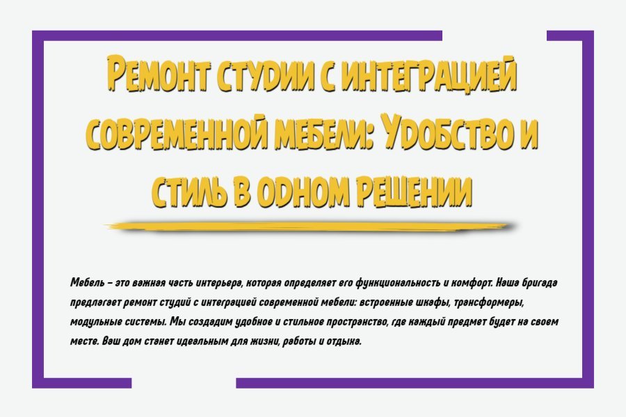 Создание стильного и удобного интерьера в студии требует тщательного подхода к выбору мебели и организации пространства. Современная мебель не только отвечает высоким стандартам дизайна, но и предлагает многофункциональные решения, которые помогают максимально эффективно использовать каждый квадратный метр. Рассмотрим, как провести ремонт студии с интеграцией современной мебели, чтобы обеспечить комфорт и стиль в одном решении.